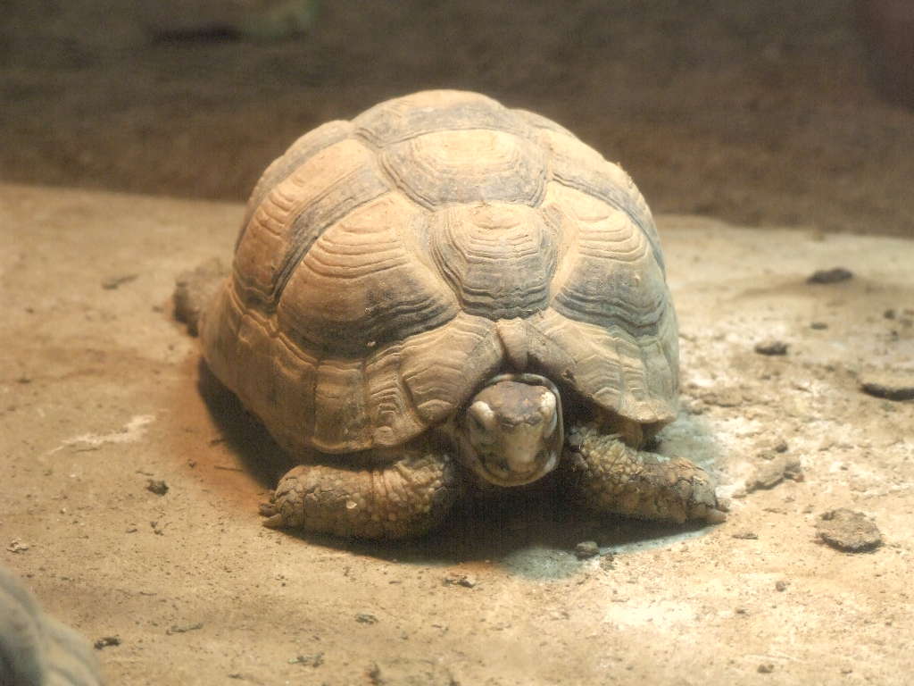 エジプトリクガメは、北半球で最も小さなリクガメです。 砂漠、ステップ、低木林などに生息します。 乾季になると穴の中で休眠し、降雨後は冬季でも活動します。 繁殖形態は卵生で、秋季から春季に交尾を行います。 3〜6月に、1回に1〜3個の卵を産みます。 開発や放牧による生息地の破壊、ペット用の乱獲などにより生息数は激減しています。 1995年にワシントン条約附属書Iに掲載されました。 エジプトでは保護区の指定、飼育下繁殖させた個体に発信機をつけて野生に返すなどの 保護対策が進められています。 絶滅寸前の種です。 |