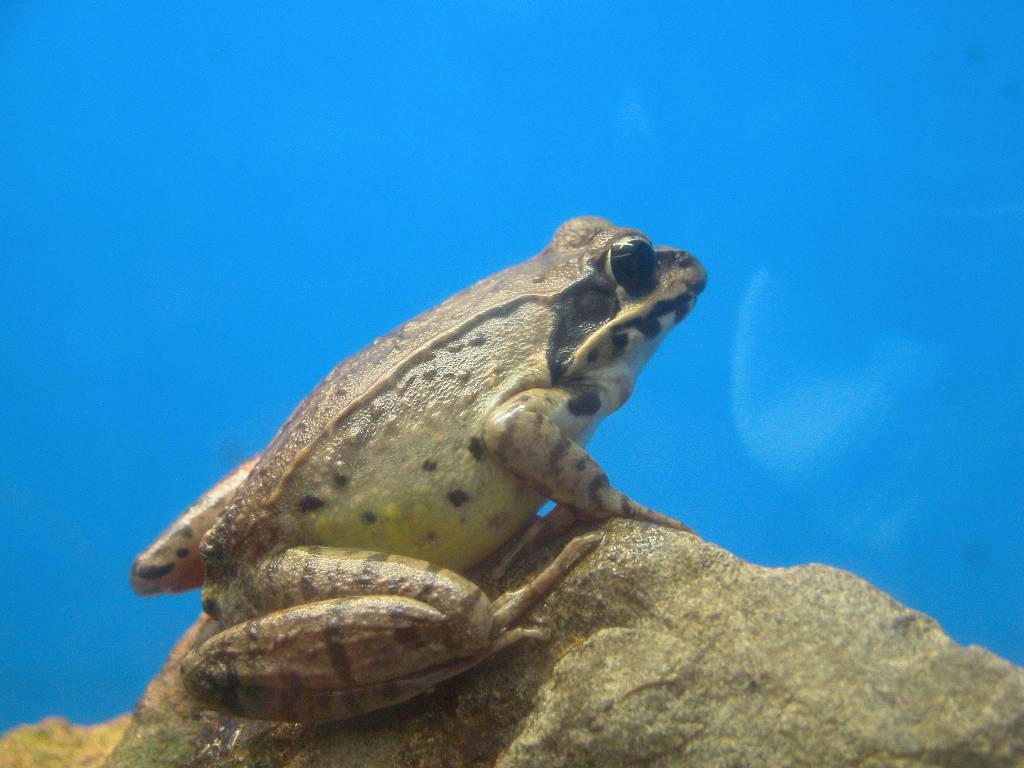 平野部から低山にかけての池、水田付近に生息します。春から秋まで活動し、冬は地中で冬眠します。 トノサマガエルの名前はよく知られており、非常によく似ているダルマガエルがトノサマガエルと 呼ばれていることがあります。 動作は陸上・水中を問わず非常に敏捷で、並の人間が道具なしで捕獲するのは困難です。 水田などでは外敵から逃れるために素早く水中の泥を掘って身を隠します。 また、なわばり意識が強く、同じ容器で飼っている場合などにはしばしば共食いをすることがあります。 開発による生息地の破壊、水質汚染、水田の減少、人為的に移入されたウシガエルによる捕食などにより 生息数は減少しています。 また以前までは住み分けを行っていたトウキョウダルマガエルと生息地や繁殖時期が重複してしまい、 種間雑種による遺伝子汚染も懸念されています。 野生での寿命は3〜4年です。 準絶滅危惧(NT)です。 |