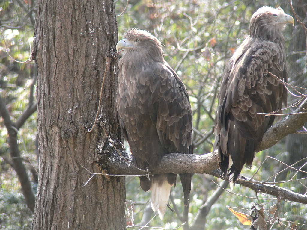 海岸、河口、海沿いの水田や湖沼、内陸の湖沼に生息します。 オオワシとは生息地が共通し、北海道では厳冬季にオオワシと流水の上に止まっているのが見られます。 営巣地は海岸近く、近くに河川や湖沼がある森林で、周囲の全域が見渡せる小高い場所が好まれます。 湖沼や河川があるなど環境条件が満たされれば、海岸から25km離れた場所でも繁殖することがあります。 全体がほぼ褐色で、翼の上下面とも同色、風切は黒っぽく、頭は黄褐色がかり、体の他の部分より淡く、 時には白っぽく見える個体もいます。尾はゆるやかなくさび形で白色、クチバシ、足ともに黄色です。 雌雄同色です。 クワックワッと鳴きます。 ミズナラ、ダケカンバ、トドマツ、エゾマツなどにある古巣を補強しながら、何年も利用する皿型の巣を、 高木の樹上や断崖に作り、3〜4月に2個の卵を産みます。主にメスが抱卵し、抱卵期間は約38日です。 ヒナは孵化してから70〜75日で飛翔できるようになり、さらに35〜40日後に独立します。生後5〜6年で 性成熟し、生後6〜7年で成鳥羽に生え換わります。 ユーラシア大陸北部で繁殖し、冬季になると中華人民共和国東部、ペルシャ湾周辺に南下し越冬します。 東ヨーロッパや西アジア、中華人民共和国北東部などでは周年生息しています。 日本では主に基亜種が冬季に北日本に飛来(冬鳥)しますが、北海道北部および東部では周年生息する 個体もいます(留鳥)。 2010年1月に開催された環境省の保護増殖分科会の調査では、北海道内で越冬する個体数は約1,700羽 (うち、番(つがい)約140組)という結果でした。また、かつては対馬に定期的に飛来する個体もいました。 開発による生息地の破壊、人間の侵入による繁殖の妨害などにより生息数は減少しています。また死骸も 含めた獲物を通じて農薬による有機塩素化合物や狩猟用の銃弾による鉛での中毒も懸念されています。 スコットランドでは絶滅しましたが、再導入されました。 日本では1970年に種として国の天然記念物、1993年に種の保存法施行に伴い国内希少野生動植物種に 指定されています。 中国では「国家一級重点保護野生動物」に指定されています。 ワシントン条約附属書Iに記載され、取引は厳しく制限されています。 環境省レッドリストでは、絶滅危惧IB類(EN)に指定されています。 |